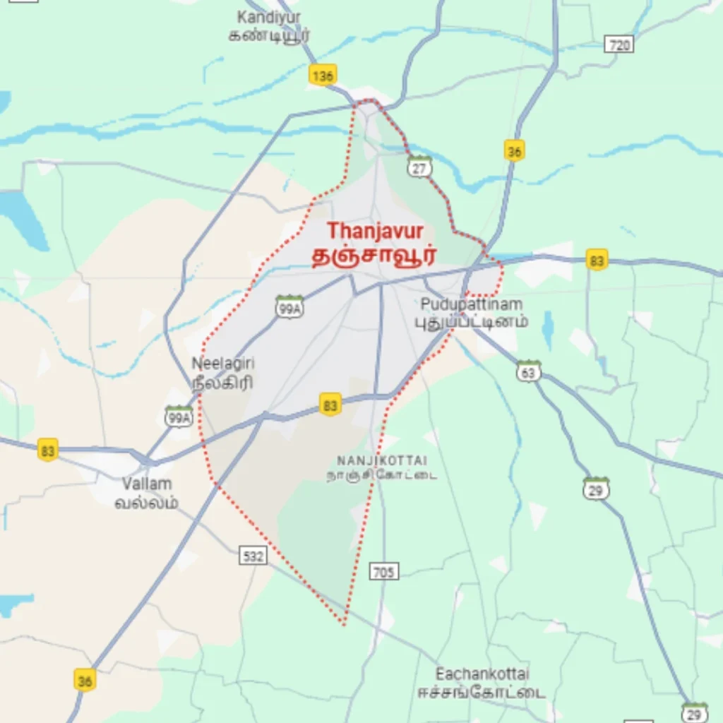 Our Thanjavur gold buyers are available near Anna Nagar, Arulanatha Nagar, Philomina Nagar, Fathima Nagar, Villar Road, Burma Colony, EB Colony, RMS Nagar, Pallaniyappa Nagar, VOC Nagar, Balaji Nagar, Vallam, Thiruvaiyaru, Orathanadu, Ayyampettai, and across major locations like Old Bus Stand, New Bus Stand, and Medical College Road.